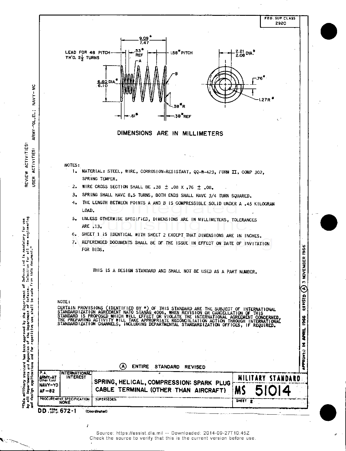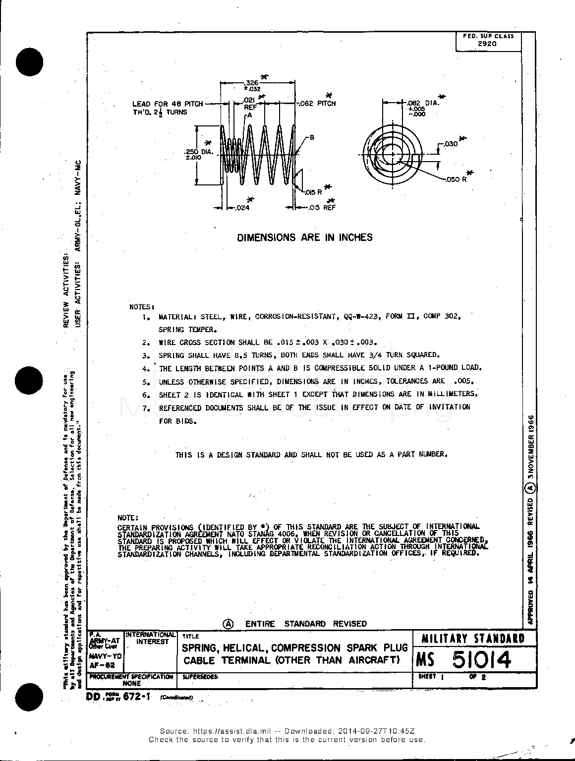 MS51014 Spring, Helical, Compression, Spark Plug Cable Terminal (Other Than Aircraft)